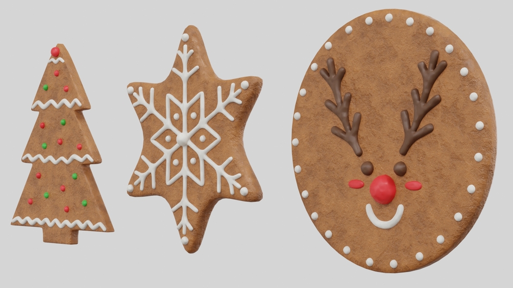 The Gingerbread Christmas Cookies Set 1 3D Model is a highly realistic and intricately detailed collection of festive holiday treats. This set includes various gingerbread cookie shapes such as stars, trees, hearts, and bells, each designed with textured icing decorations and a warm, baked appearance. Perfect for adding a touch of festive charm to your digital projects, this model set captures the cozy and nostalgic feel of the holiday season with stunning realism.