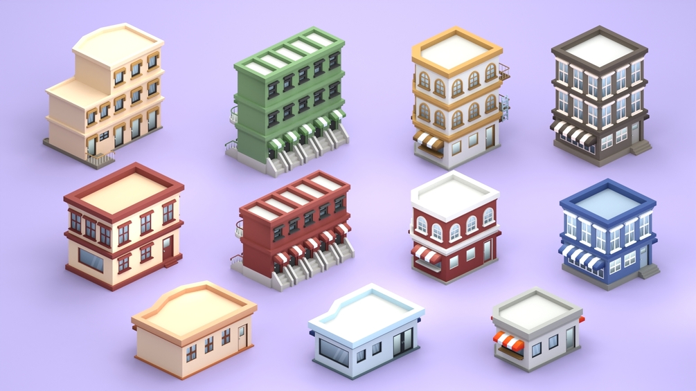 Game Design: Enhance stylized or low poly-themed games with a diverse set of building models.