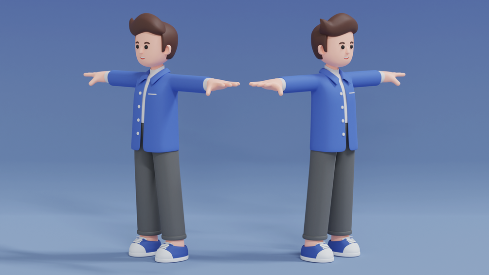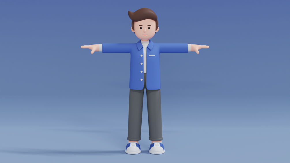 Minimal Man Cartoon Character 3D Model, a sleek and stylized representation of a cartoon character with a clean, minimalistic design.
