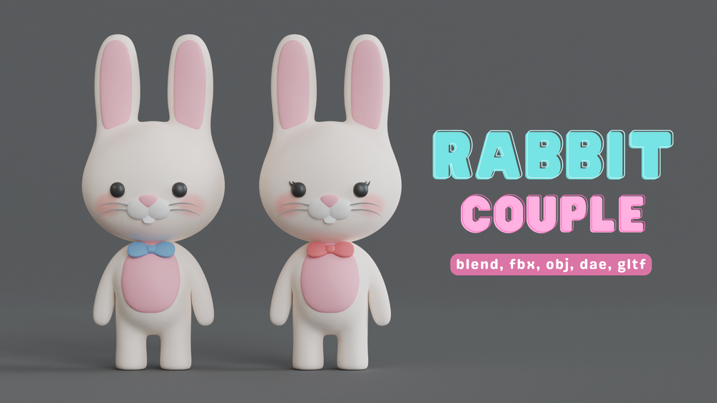 Introducing the Cute Rabbit Couple 3D Model, a delightful and meticulously crafted representation of two endearing rabbits. This model is perfect for game developers, 3D artists, and digital content creators looking to add a touch of whimsy and charm to their projects. Available in multiple file formats, this model is optimized for performance and versatile in its application.