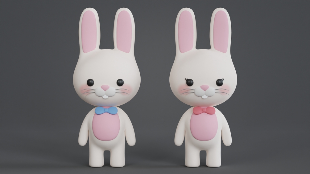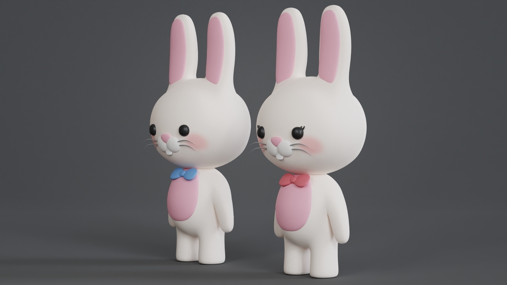 Cute Rabbit Couple 3D Model, a delightful and meticulously crafted representation of two endearing rabbits.